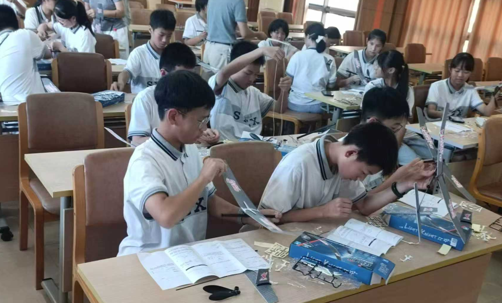 作为活动高潮,学生们亲手制作橡筋动力滑翔机,并在研究院广场进行放飞。指导老师详细讲解飞行器结构、空气动力学原理及橡筋动力机制,学生们分组协作,从零件组装到调试飞行,全程自主完成。放飞环节中,32架滑翔机腾空而起,象征着青春与科技的翱翔。这一实践项目不仅锻炼了动手能力,还深化了工程思维。一名参与学生兴奋地分享:“看着自己做的飞机飞上天,我明白了工程师的成就感——创新就是用双手改变世界!”