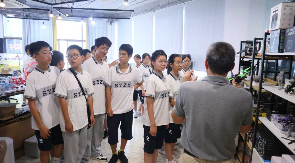 活动伊始,学生们在研究院老师的带领下,依次参观了轴承展厅、新昌工大研究院实验室和无人机科研中心。在轴承展厅,学生们通过实物模型和互动展板,了解轴承在机械工业中的核心作用,感受“精工制造”的精密魅力。随后,实验室的参观聚焦前沿科研设备及科研现场演示,让学生们近距离观察科技如何驱动产业升级。无人机科研成为亮点环节,学生们目睹了无人机设计、组装与飞行测试的全过程,并参与模拟操控,激发学生们对航空科技的热情。一名学生感叹:“原来无人机不只是玩具,它的背后是无数工程师的智慧结晶!”