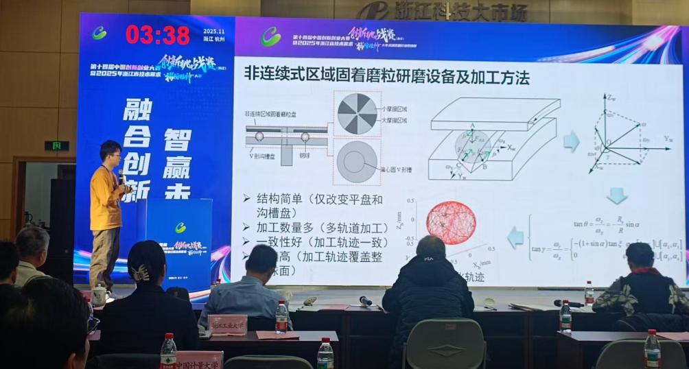 新昌浙江工业大学科学技术研究院姜力团队成功揭榜新昌县三和轴承有限公司的技术需求《轴承钢球新型超精密批量加工技术与装备研发及产业化》项目。团队聚焦G3级钢球良品率提升与工序效率优化的核心痛点,提出"自适应研磨闭环控制+工艺参数动态优化"创新方案,技术可行性与产业化价值突出,获得现场评审专家的高度认可,最终在参赛6支队伍中排名第三,荣获二等奖。